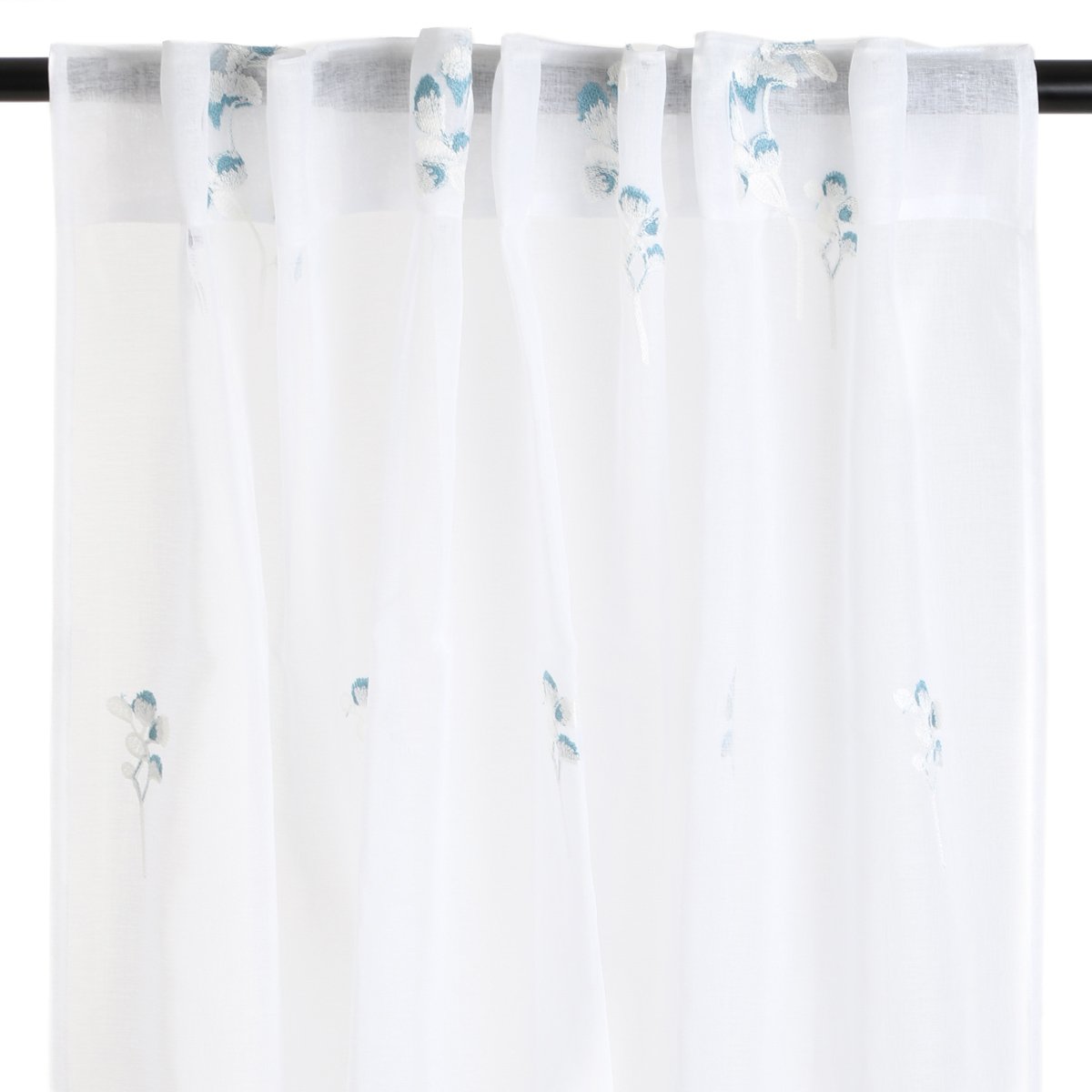 Die leichte und luftige HOMLA ALBIA Voile-Gardine wird Ihr Interieur perfekt beleben und ihm eine frühlingshafte Frische verleihen. Der weiße Hintergrund ist mit charmanten, sorgfältig gefertigten Stickereien in Form von weißen und blauen Blumen verziert. Hängend im Fenster wird sie zu einem eleganten Schmuckstück und schützt Sie vor den Blicken von Passanten, während sie bei geöffnetem Fenster schön im Wind weht.