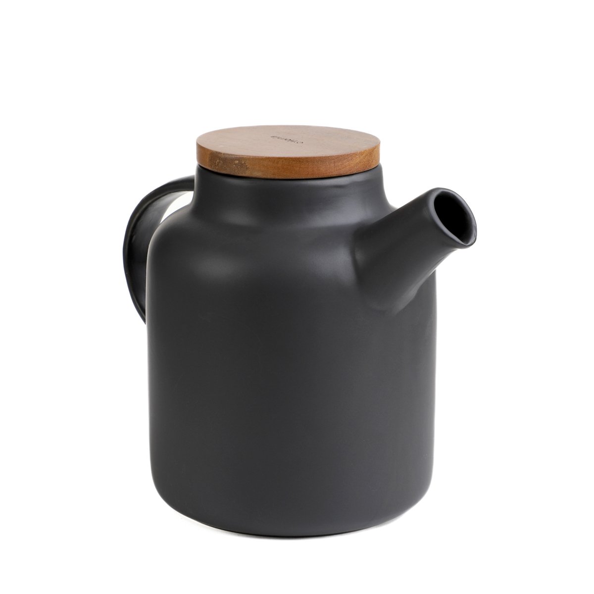 Die Kanne hat eine Kapazität von 1 Liter und ist aus strapazierfähigem Steinzeug gefertigt, das kratzfest ist. Der Deckel besteht aus Akazienholz, das durch seine natürliche Maserung besticht. Ein Edelstahl-Sieb ist im Lieferumfang enthalten. Das Produkt sollte per Hand gewaschen werden.