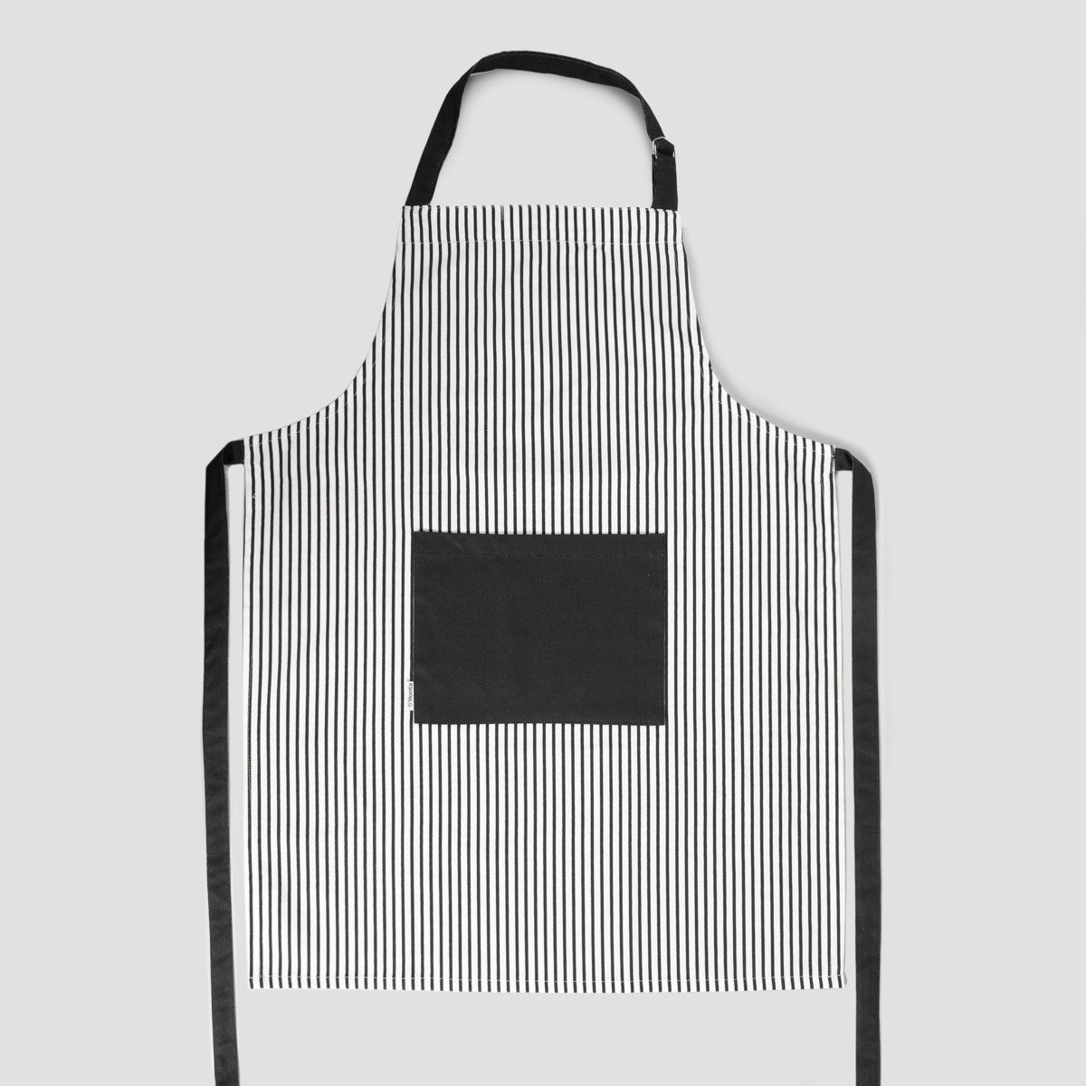 FASKO | Küchenschürze | Schwarz-Weiß gestreift, 60x80 cm