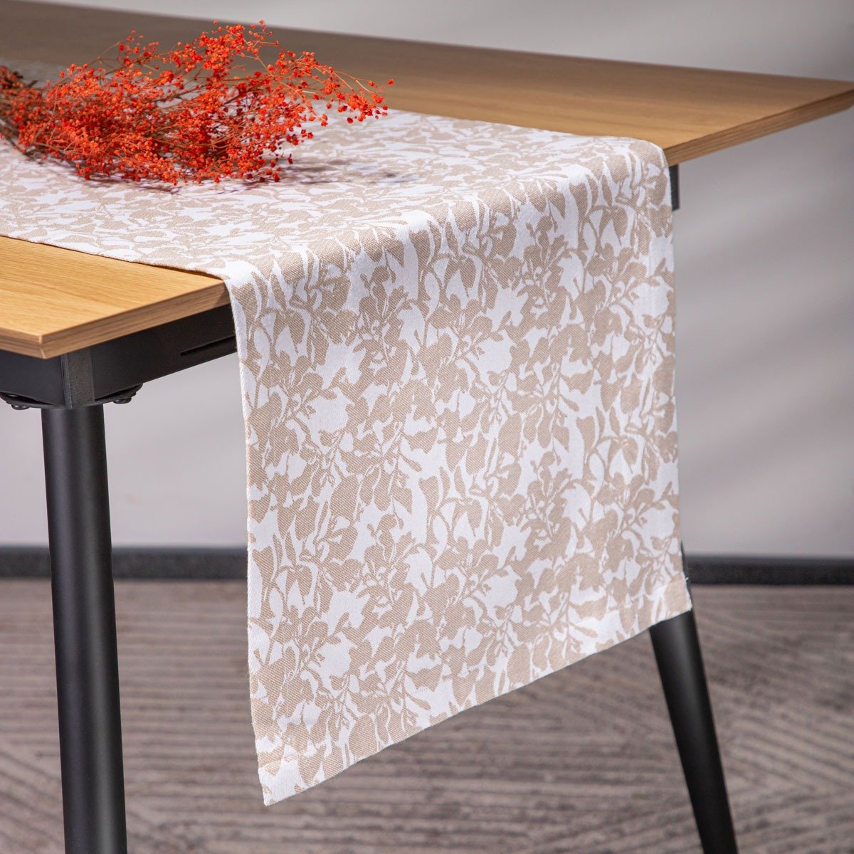 Der Bieżnik hat die Abmessungen 40x160 cm und ist aus hochwertigem Jacquard-Gewebe gefertigt. Das Material bietet eine angenehme Textur und sorgt für einen edlen Look auf jedem Tisch.