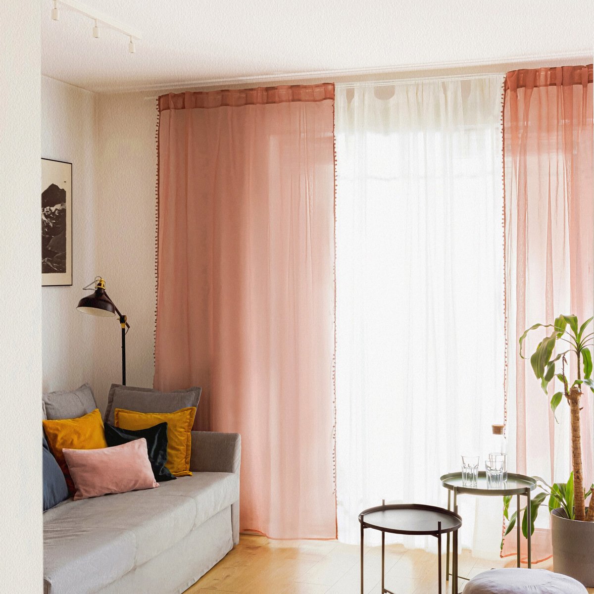 Der ADI Vorhang ist eine tolle Wahl aus der BASIC-Linie. Sein leichtes Design wird durch die rosa Pompons an beiden Seiten der Vorhänge ergänzt. Diese Dekoration bringt Farbe und Stil in Ihr Zuhause, während sie gleichzeitig eine funktionale Anwendung bietet.