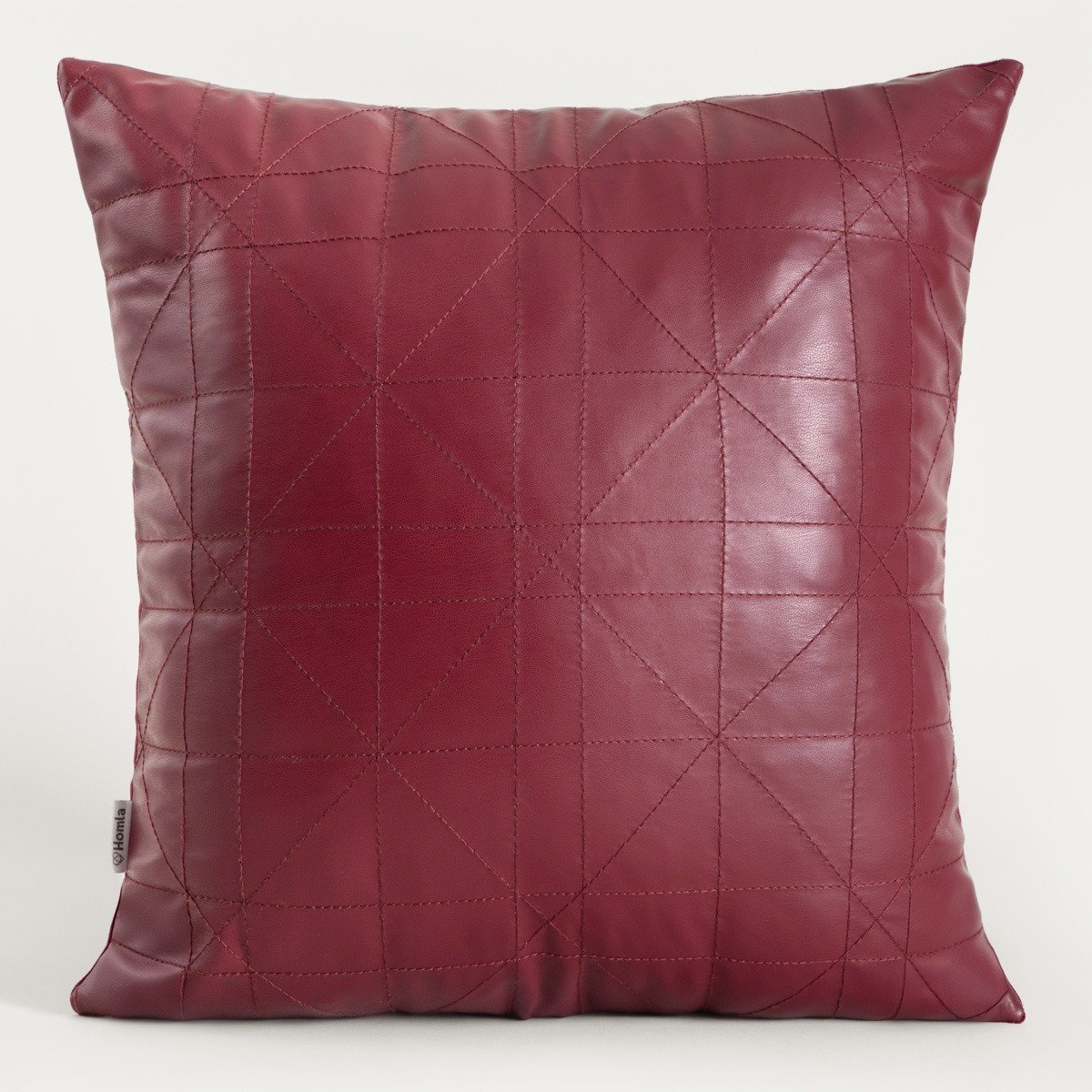 HOMLA | Pillowcase | GAVA | eco leather with decorative stitching burgundy | 45x45cm