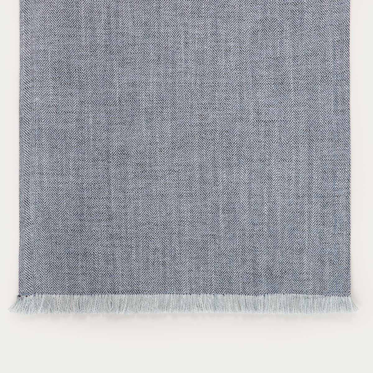 Sie möchten Ihr Interieur dezent aufwerten und einen Hauch von Eleganz hinzufügen? Der TANNE Tischläufer ist die perfekte Wahl. Das filigrane Fischgrätmuster erstrahlt in kühlen Blau- und Navy-Schattierungen. Die dekorativen, fransigen Kanten verleihen einen leichten und natürlichen Charme. Er fügt sich hervorragend in skandinavische, minimalistische und klassische Stilrichtungen ein.