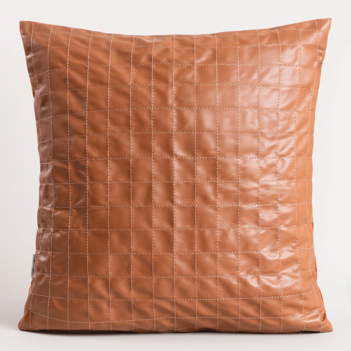 HOMLA | Pillowcase | eco-leather with decorative stitching brown | 45x45cm