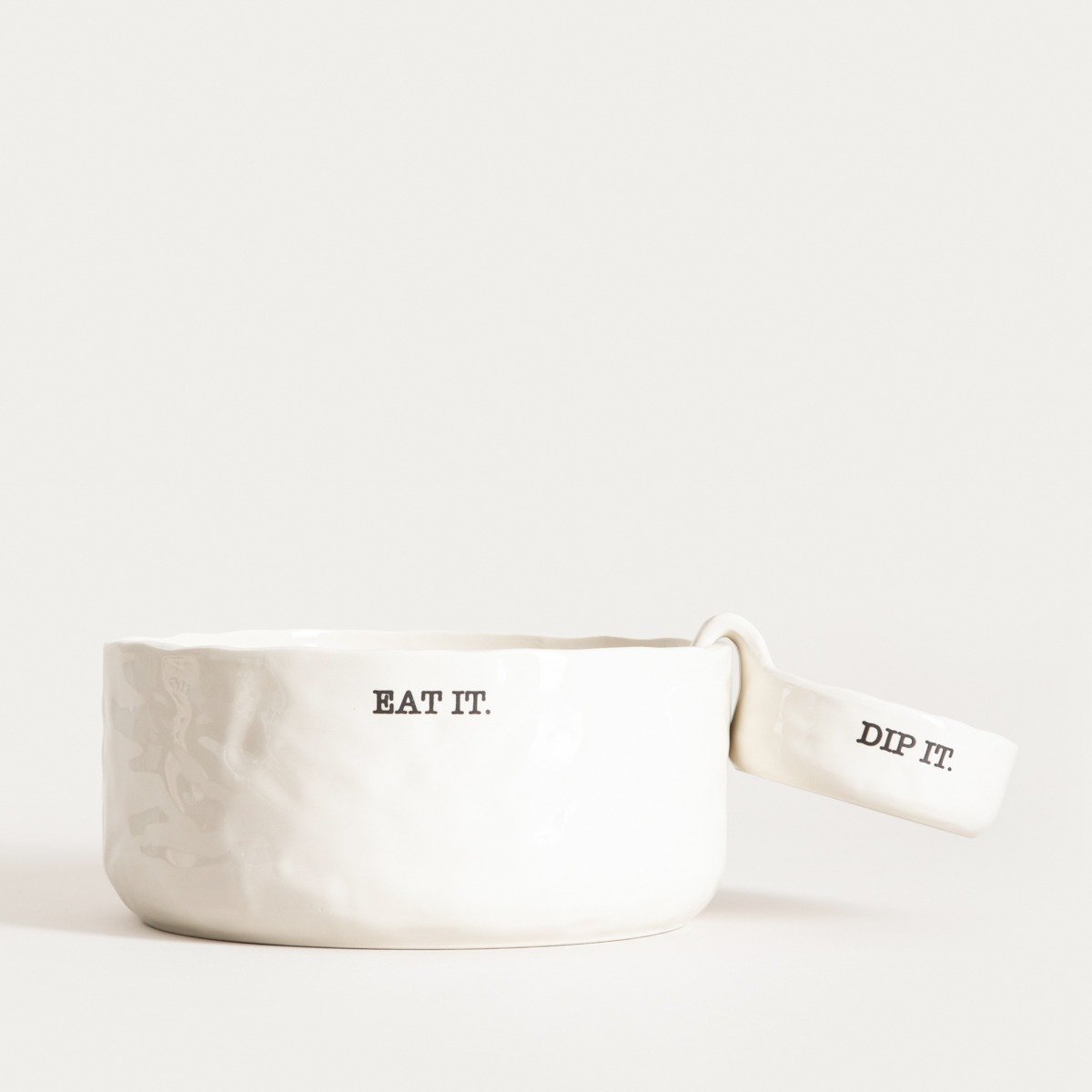 Die MINK Porzellanplatte ist eine praktische und stilvolle Möglichkeit, Snacks zusammen mit Ihrem Lieblingsdip zu servieren. Mit einer separaten Schüssel für die Sauce erleichtert sie nicht nur das Servieren von Speisen, sondern sieht zudem großartig auf dem Tisch aus. Die weiße, leicht unregelmäßige Oberfläche kombiniert mit der charmanten Aufschrift "EAT IT" und "DIP IT" sorgt für ein brillantes Gesamtbild.