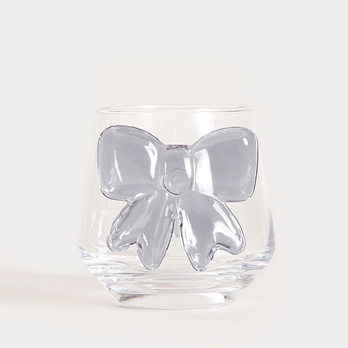 Das BOWY-Glas mit elegantem schwarzem Bogen ist eine subtile Form der Dekoration, die jedes Getränk stilvoll wirken lässt. Das transparente Glas und das ausdrucksstarke dreidimensionale Detail ergeben ein zusammenhängendes, designerisches Gesamtbild. Es kann während Abendessen mit Freunden, festlichen Frühstücken oder geselligen Zusammenkünften als Tischdekoration dienen.