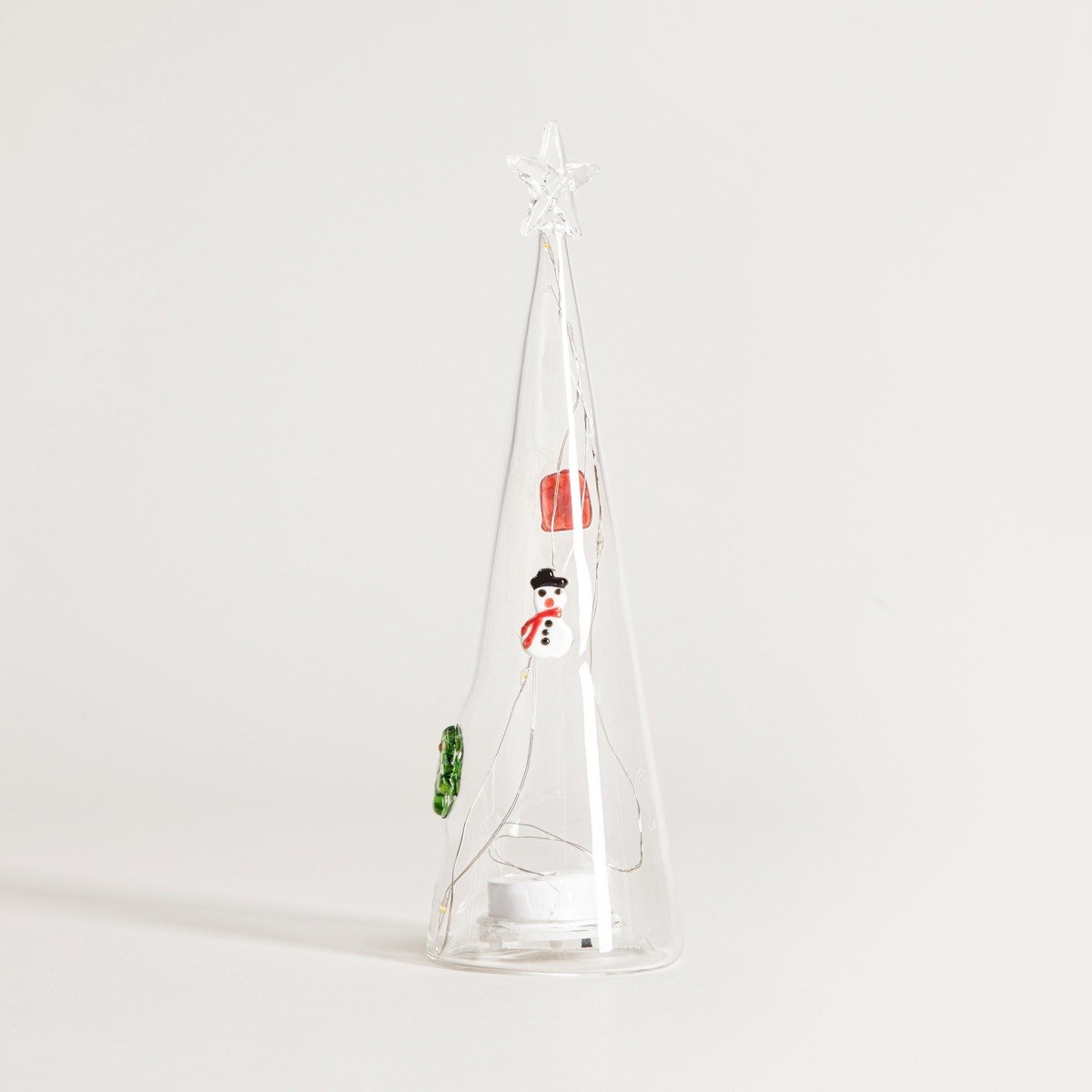 HOMLA | LED Dekoration | Glas Weihnachtsbaum mit integrierten Dekorationen | 23,5 cm