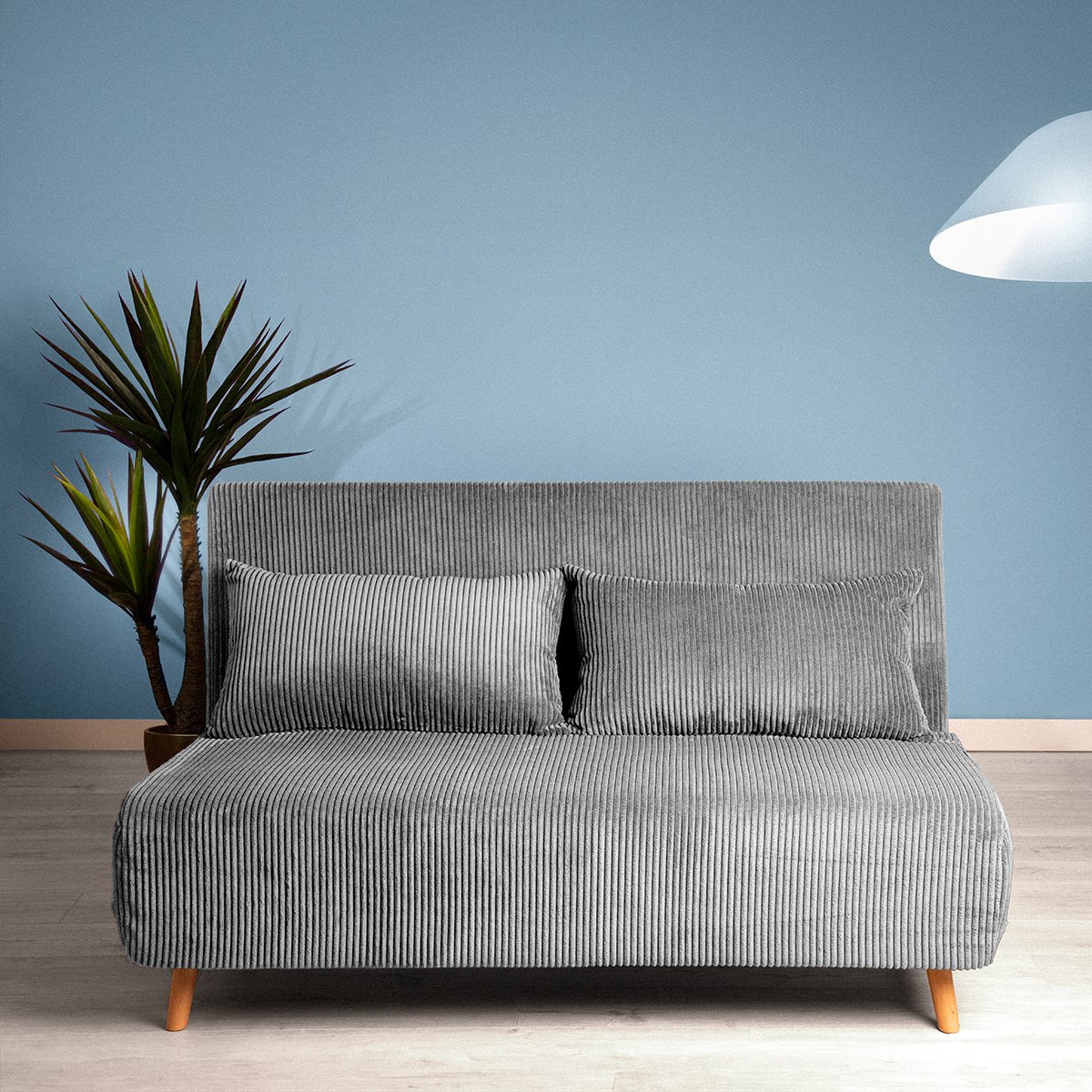 HOMLA | Sofa | 2-Sitzer mit Schlaffunktion in Cordstoff Grau