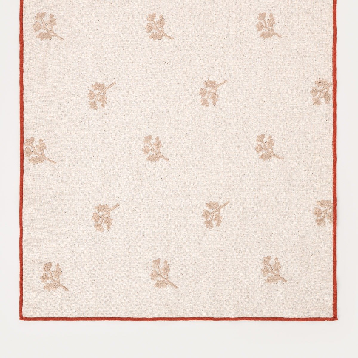 Werfen Sie einen Blick auf das stilvolle Accessoire, das den Charme Ihres Tisches ergänzt. Der FROID Runner mit zarter Blätterstickerei ist ideal für Innenräume, die im klassischen, Boho- oder rustikalen Stil dekoriert sind. Die dekorative Paspel unterstreicht seinen einzigartigen Charakter und verleiht jeder Arrangierung einen subtilen Charme.