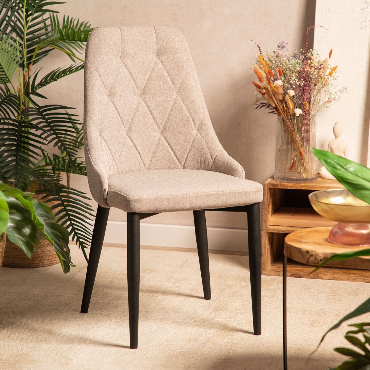 Auf der Suche nach einem komfortablen und gleichzeitig stilvollen Stuhl? Der HOMLA LOUIS QUILTER Stuhl wird sicherlich keine Erwartungen enttäuschen! Er besteht aus hochwertigen Materialien, die Haltbarkeit und Festigkeit bei der täglichen Nutzung gewährleisten. Der Sitz des Stuhls ist mit einem angenehm zu berührenden Stoff bezogen, der auf der Rückenlehne mit einem stilvollen Quadratstepp verziert ist. Der beige Bezug harmoniert perfekt mit den schwarzen Beinen und schafft eine elegante, moderne Kombination.
