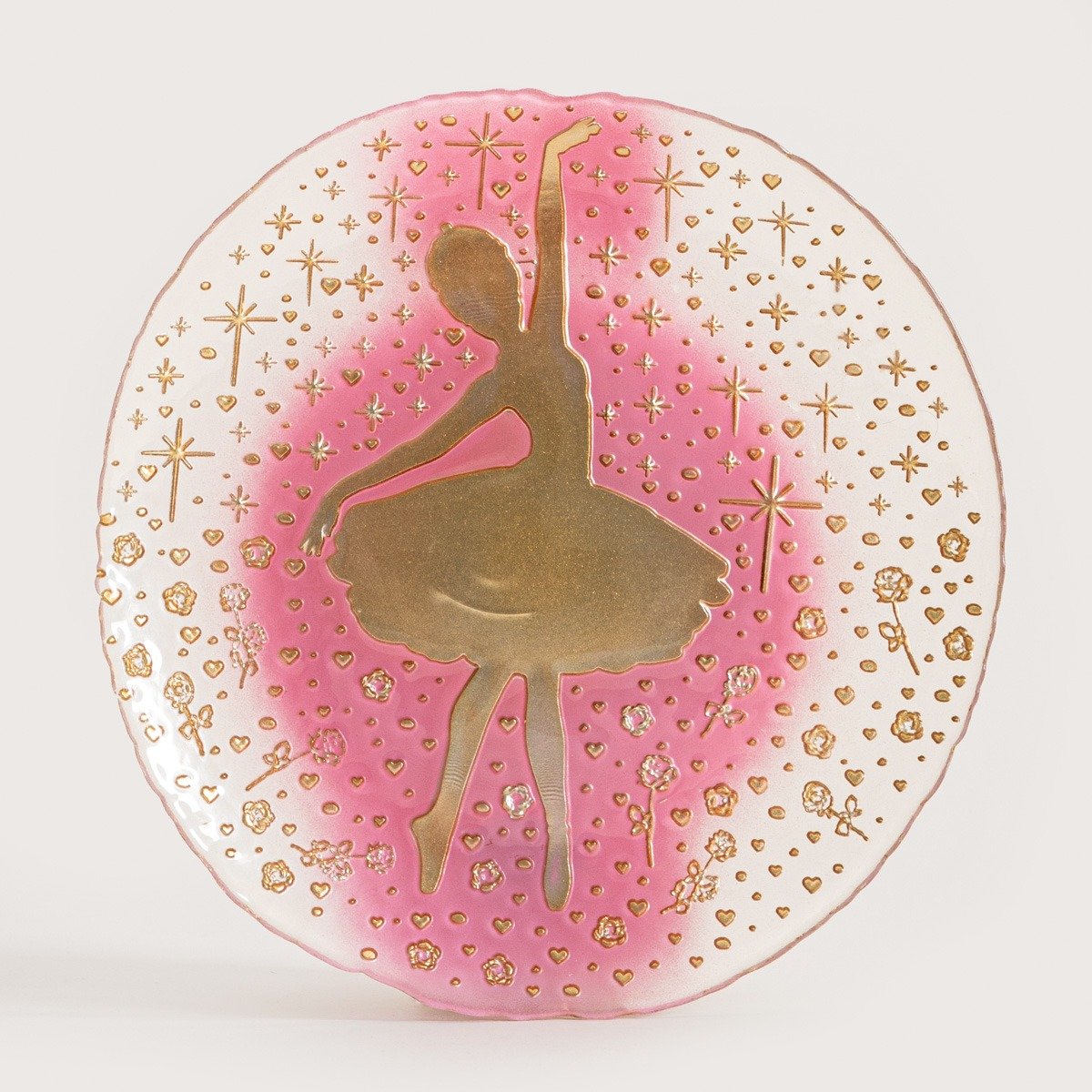 Der rosa Dinnerplate ist ein schönes Geschirrstück für die Weihnachtszeit. Der Teller ist mit einem goldenen Design verziert, das eine Ballerina zeigt. Das Märchen-Motiv der Tänzerin weckt Erinnerungen an das Ballett "Der Nussknacker". Das roségoldene Farbschema wird einen Hauch von Magie zu Ihrem Weihnachtsarrangement hinzufügen. Dieser schöne Teller lässt jedes Gericht noch appetitlicher erscheinen.