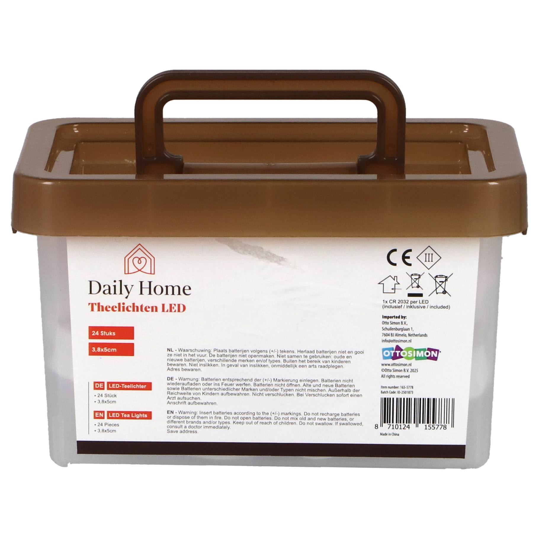 Die Daily Home LED Teelichter umfassen ein Set von 24 stilvollen und vielseitigen Lichtquellen, die einen angenehmen, warmen Schein erzeugen, der an echte Kerzen erinnert. Mit ihrem realistischen Kerzenlichteffekt sind sie die perfekte Deko für verschiedene Anlässe, wie Hochzeiten, Feiertage oder einfach zur Verschönerung Ihres Wohnraums.