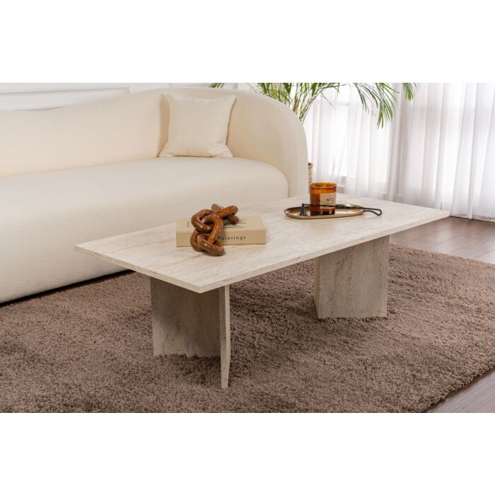 Asir | Salontafel | Travertin - 100% melamine gecoat spaanplaat - 119 x 60 x 40 cm