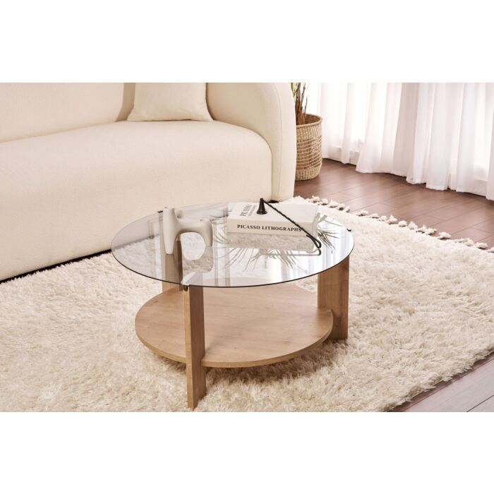 Asir | Salontafel | Saffier Eikenhout & Rook - Gehärtetes Glas & Melaminbeschichtete Spanplatte