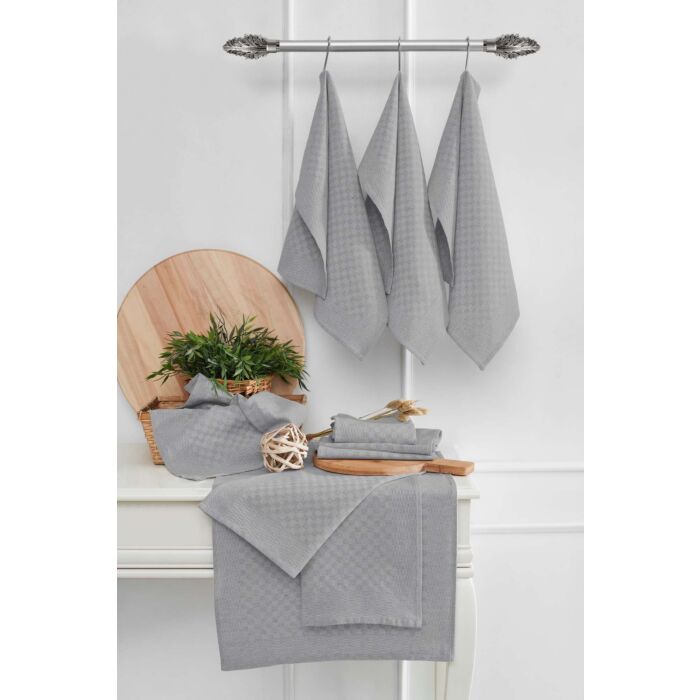 Asir | Keukendoeken Set | 80% Baumwolle / 20% Polyester, 40 x 60 cm, Dunkelgrau