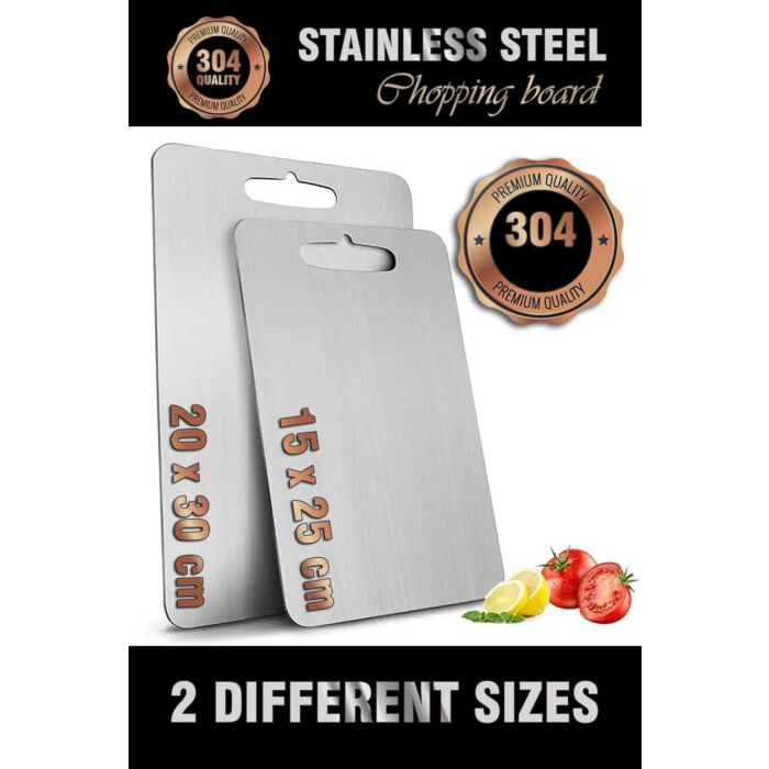 De set bevat twee verschillende maten: 20 x 30 cm en 15 x 25 cm. Beide Snijplanken zijn vervaardigd uit 100% roestvrij staal, dat zorgt voor een robuuste en langdurige gebruikservaring. Met een dikte van 1 mm zijn ze perfect voor intensief gebruik in elke keuken.