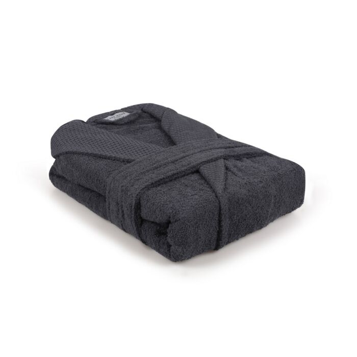 Onze badjas heeft een prachtige antracietkleur en straalt elegantie en verfijning uit. Of je nu in huis rondhangt of uit de douche stapt, deze badjas voegt een vleugje luxe toe aan je dagelijkse routine.