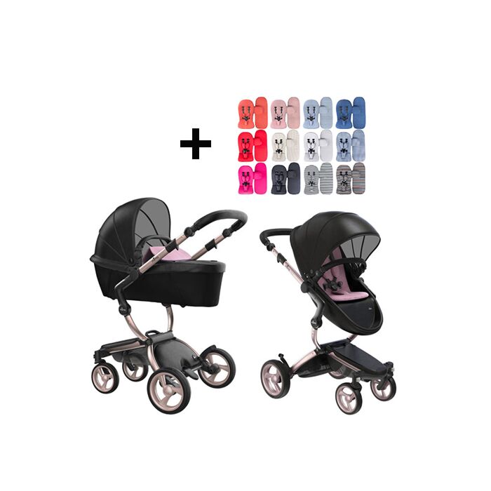 Mima Xari Kinderwagen | Frame - Rose Gold | Zitting + Kap - Black | Starter Pack - Pixel Pink