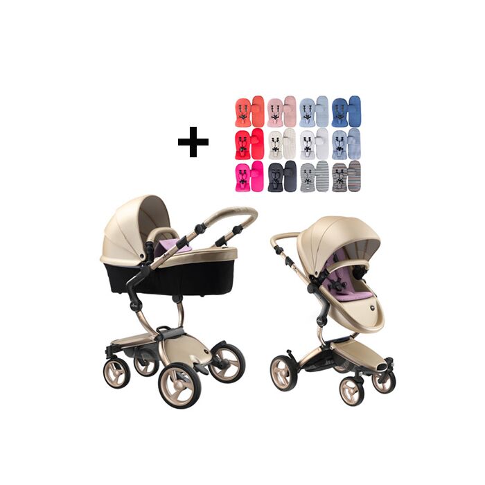 Mima Xari Kinderwagen | Frame Champagne | Zitting + Kap Champagne | Starter Pack Pixel Pink