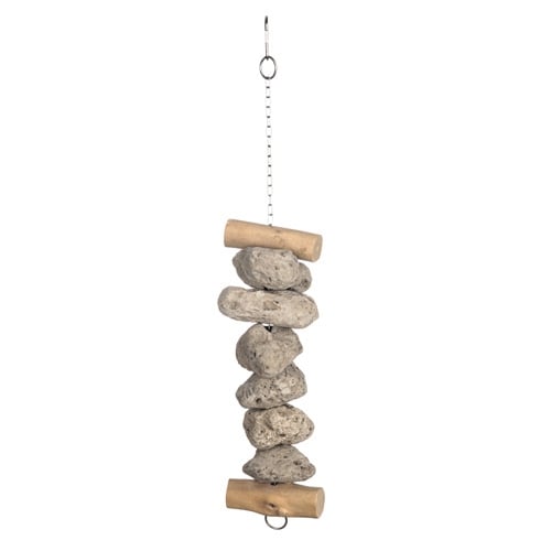 Der Lavasteinpendel L ist ein hervorragendes Spielzeug, das speziell für Vögel entwickelt wurde. Mit den Maßen von 50 x 11 cm bietet es ausreichend Platz für die Schnabelpflege und sorgt gleichzeitig für Spielspaß. Diese Girlande aus Lavastein spricht besonders Vögel mit mittelgroßen bis großen gebogenen Schnäbeln an und ist ideal für die Förderung der Schnabelgesundheit.