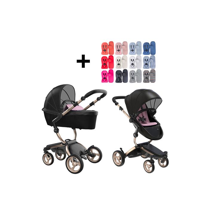 Mima Xari Kinderwagen | Frame - Champagne | Zitting + Kap - Black | Starter Pack - Pixel Pink