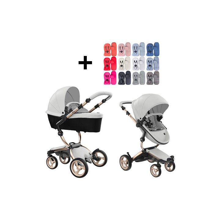 Mima | Xari Kinderwagen | Frame - Champagne | Zitting + Kap - Snow White | Starter Pack - Black & White