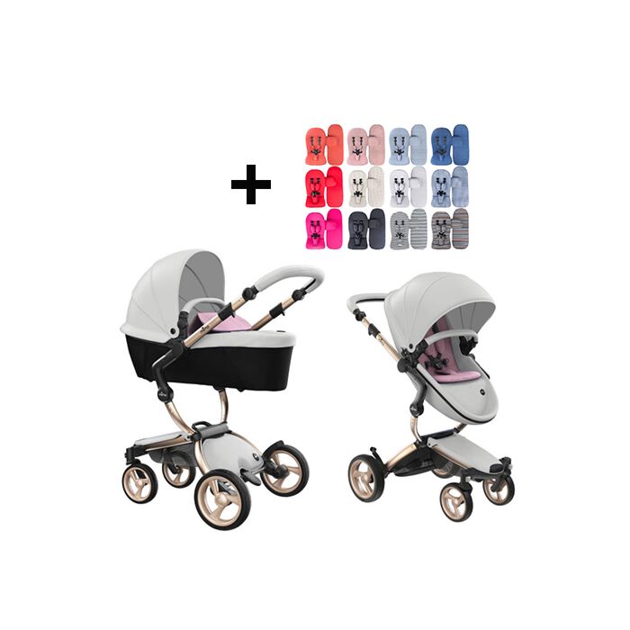 Mima Xari Kinderwagen | Frame - Champagne | Zitting + Kap - Snow White | Starter Pack - Pixel Pink