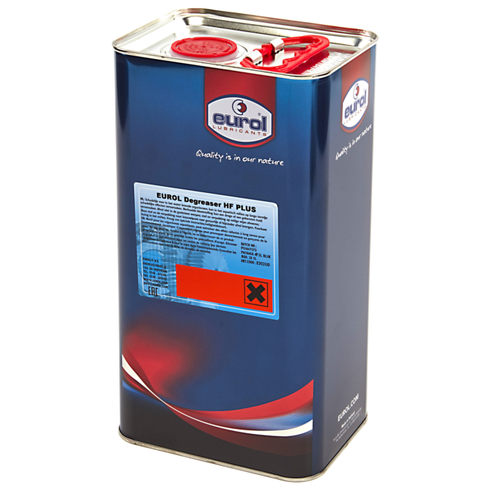Eurol Ontvetter HF Plus wird in einer praktischen 5-Liter-Dose angeboten, die eine einfache Handhabung ermöglicht. Die Formel ist pH-neutral und damit sicher für verschiedene Oberflächen, einschließlich Kunststoffen und Gummi, wodurch es vielseitig einsetzbar ist.
