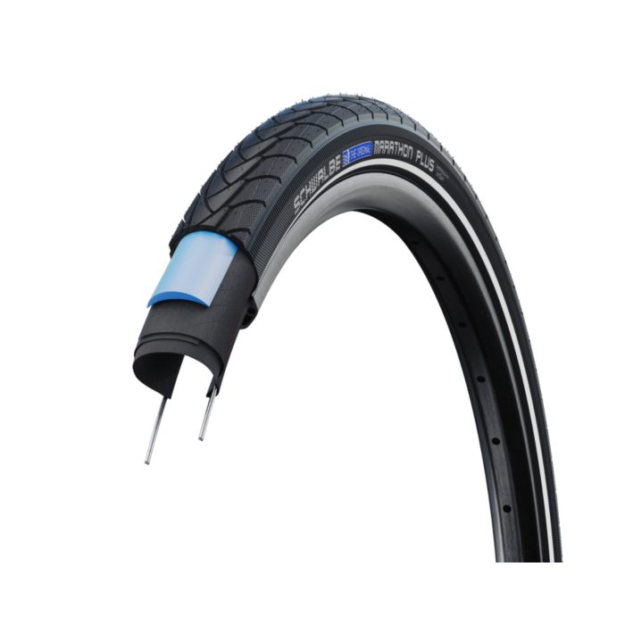 Der Schwalbe Marathon Plus ist ein weltweit alleiniger "unplattbarer" Reifen, dank seiner einzigartigen, patentierten 5 mm dicken Anti-Platt-Schicht aus speziellem und elastischem Gummi. Selbst Nägel können diesem Reifen nichts anhaben. Dieser Reifen rollt jetzt leichter als je zuvor und hält dank der Anti-Aging-Seitenwände auch extrem lange, geschützt vor vorzeitigem Altern durch Witterungseinflüsse. Darüber hinaus ist der Marathon Plus dank der speziellen Anti-Aging-Technologie äußerst beständig gegen unschöne Risse.