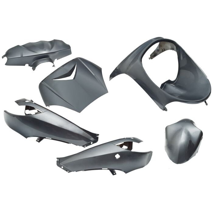 - Insgesamt 6 Teile: Vorfront, Vorderradkotflügel, linke und rechte Seitenteile, Unterfront und Lenkermontage