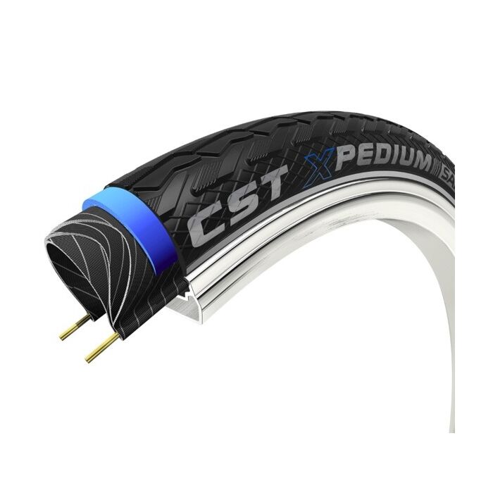 Die CST Xpedium Safe ist die ideale Wahl für alle Radfahrer, die auf der Suche nach einer robusten und zuverlässigen Außenband sind. Speziell entwickelt, um Pannen zu verhindern, bietet die Xpedium Safe ein hohes Maß an Sicherheit und Komfort. Diese Reifen sind besonders bei E-Bike-Nutzern beliebt, da sie für Geschwindigkeiten von bis zu 25 km/h ausgelegt sind und sowohl in städtischen als auch in ländlichen Gebieten eine hervorragende Leistung bieten.