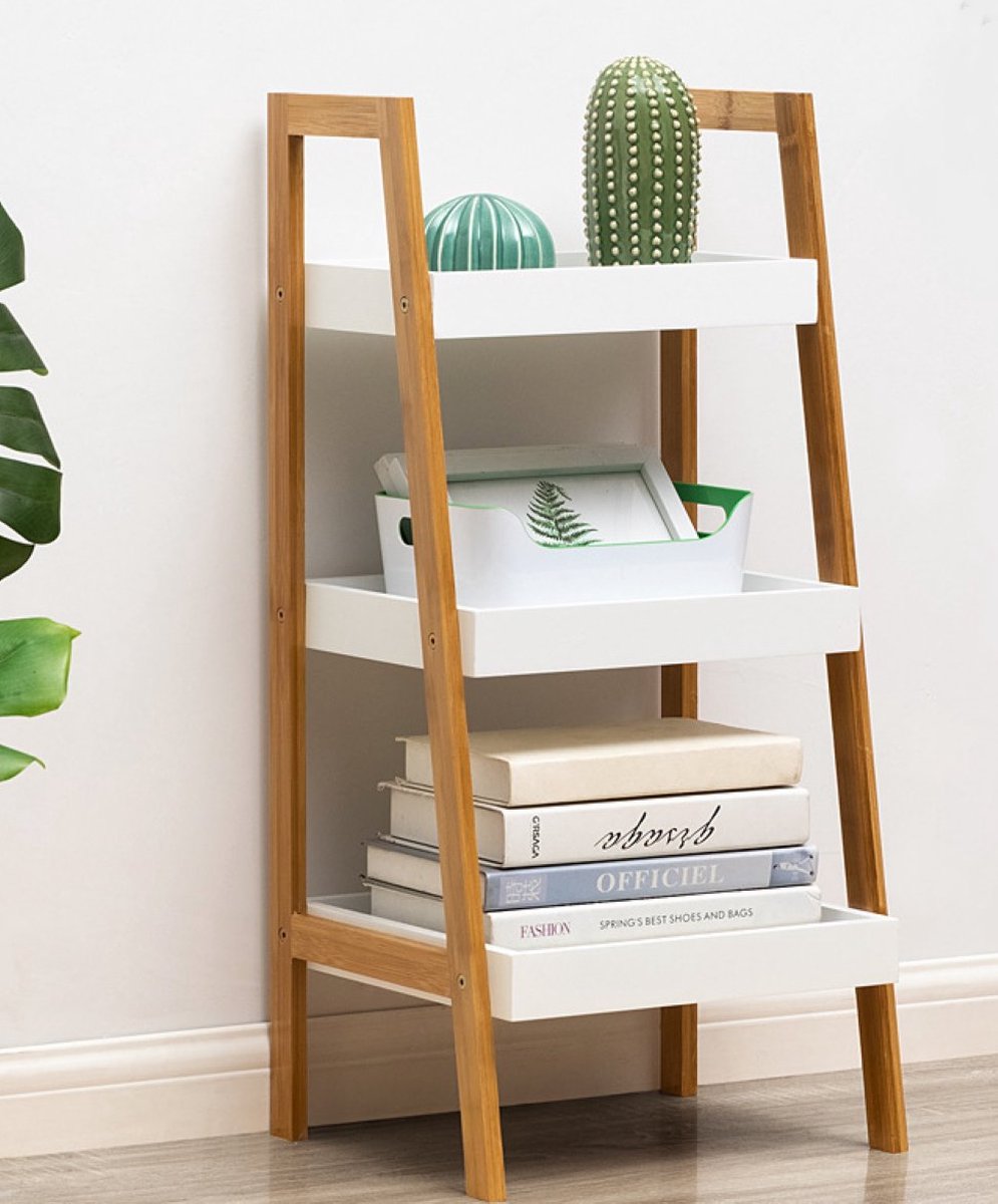 Dieses Wandregal hat die Abmessungen von ca. 32 cm in der Breite, 30 cm in der Tiefe und 75 cm in der Höhe. Das Regal besteht aus einer hochwertigen Kombination von Bamboe und MDF, was eine langlebige und zugleich ansprechende Oberfläche gewährleistet.
