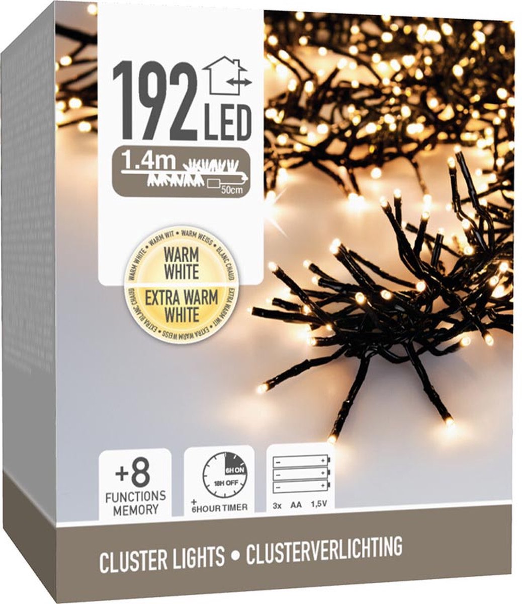 DSS | Clusterverlichting | 192 LED - 1,4m - Zwei Farben - Batterie - Lichtfunktionen - Timer