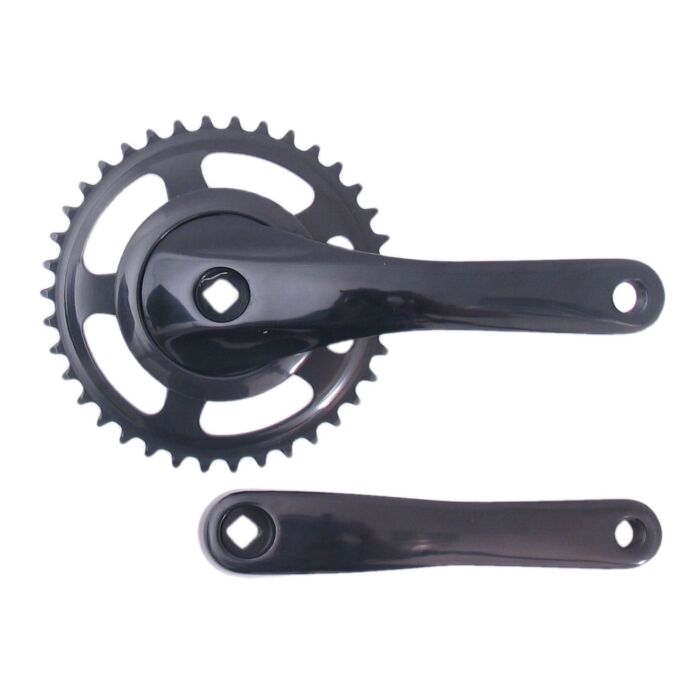 Dieses Crankstel ist so entworfen, dass es eine effektive Kraftübertragung gewährleistet und gleichzeitig einen sanften Betrieb ermöglicht. Das elegante schwarze Design passt nahtlos zu verschiedenen Fahrraddesigns und unterstreicht die sportliche Ästhetik.