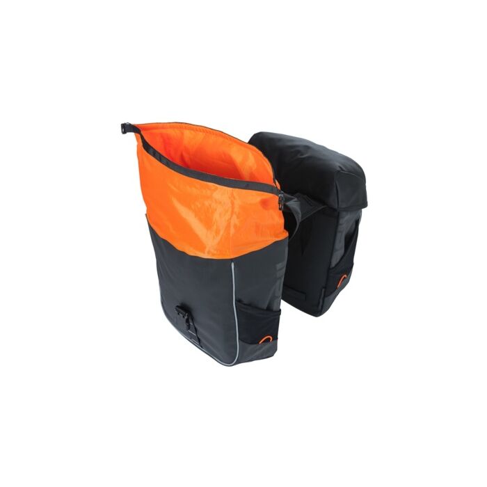 Basil | Doppelte Fahrradtasche | 34 Liter, wasserfest, schwarz/orange