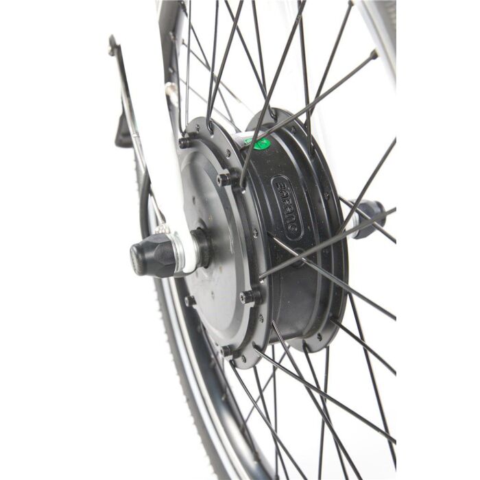 Der in das Vorderrad integrierte Bafang-Motor mit 36 Volt und 250 Watt sorgt für eine beeindruckende Leistung und mühelose Unterstützung während der Fahrt. Die 7-Gang Shimano-Nabenschaltung ermöglicht ein sanftes und müheloses Schalten, während die verstellbare Sattelstütze und Lenker für optimalen Komfort sorgen.