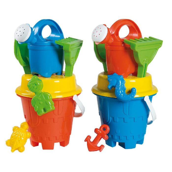 - Enthält: Eimer mit 15 cm Durchmesser, Siebdeckel, 2 Sandförmchen, Gießkanne, Rechen und Schaufel.
