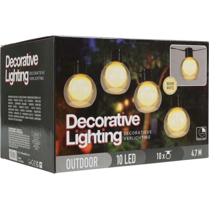 DSS | Feestverlichting | 10 LED Lampen - 270 cm - Warm Weiß - Timer