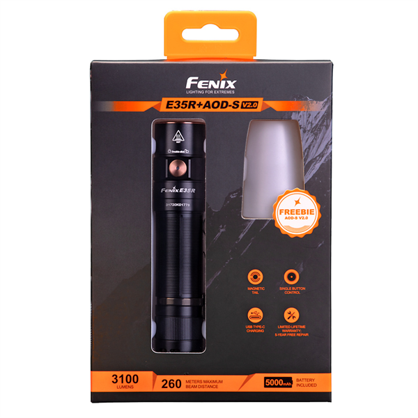 Die Fenix E35R hat ein kompaktes Format, ideal für die Handtasche oder den Rucksack. Sie besteht aus hochwertigem, luftfahrtgeeignetem Aluminium, das sowohl leicht als auch extrem robust ist. Das Gehäuse ist wasserdicht und staubdicht nach IP68-Standard, was sie für Einsätze bei jedem Wetter geeignet macht.