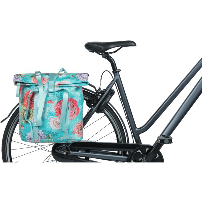 Die Basil Bloom Field Shopper verfügt über ein gepolstertes Fach, das Platz für Laptops oder Tablets bis zu 14 Zoll bietet. Ihre wasserfeste Konstruktion sorgt dafür, dass die Inhalte bei schlechtem Wetter geschützt sind. Die Tasche lässt sich einfach mit einem Hook-On-System am Gepäckträger befestigen, wobei die Haken bei Nichtgebrauch hinter einem Reißverschluss verborgen werden können, sodass sie wie eine herkömmliche Umhängetasche aussieht.