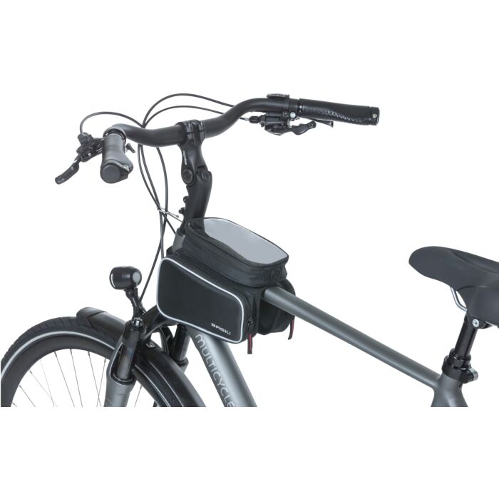 Die Basil Frametas ist speziell für den sportlichen Einsatz konzipiert und ermöglicht es Radfahrern, ihre wichtigen Accessoires während der Fahrt bequem und sicher zu transportieren. Das abnehmbare Oberteil mit touchable Fenster erlaubt es, das Smartphone problemlos zu nutzen, ohne es aus der Tasche nehmen zu müssen. Zudem gibt es eine Öffnung für Ohrhörer, was den Musikgenuss unterwegs erleichtert.