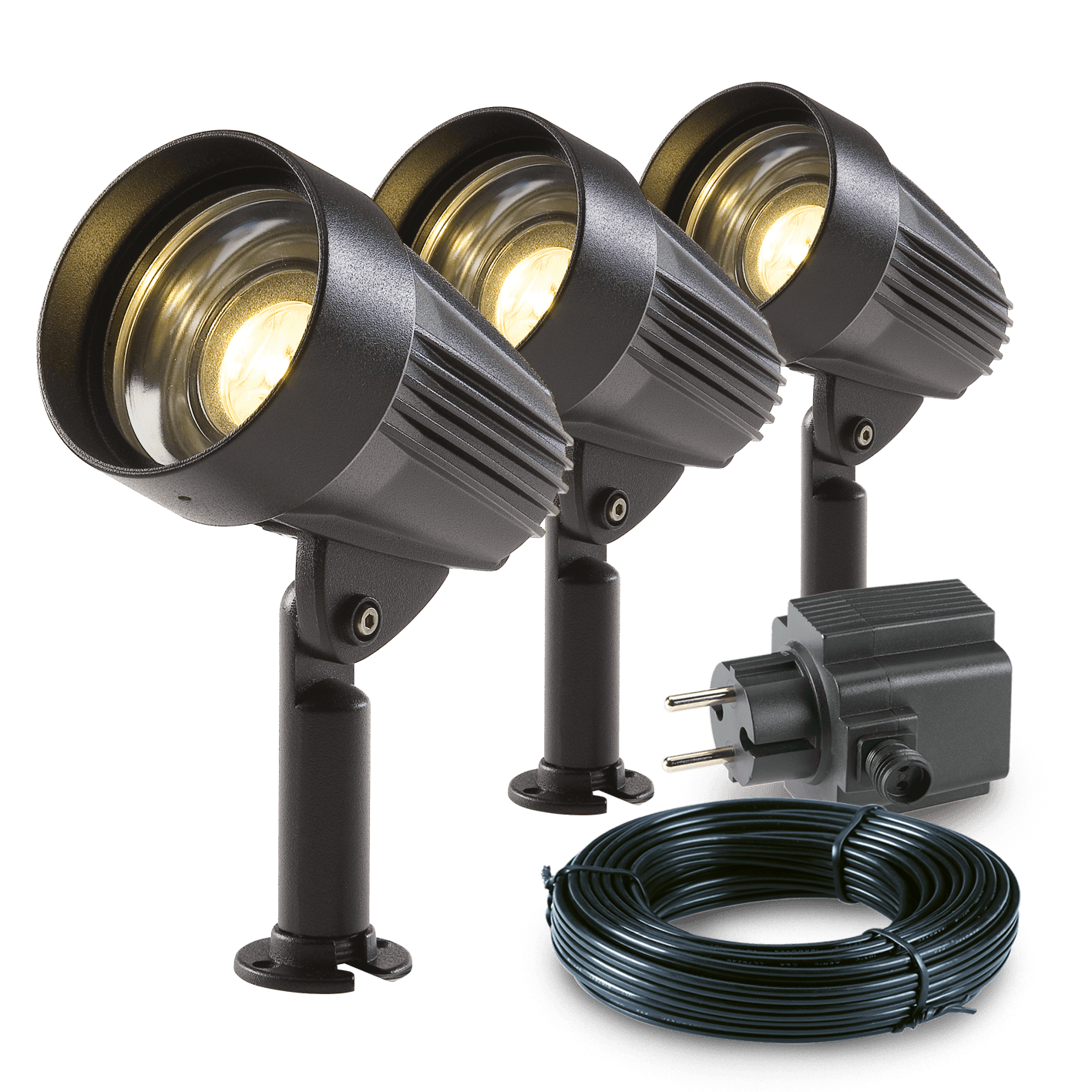 Die Leuchten im Corvus-Set bieten eine hochwertige 12 Volt Außenbeleuchtung, die einfach installiert werden kann. Ihr modernes Design ergänzt jede Gartenlandschaft und schafft eine stilvolle Beleuchtungslösung. Durch die Verwendung von energiesparenden Lampen ermöglichen diese Leuchten eine wirtschaftliche Nutzung und bleiben dabei umweltfreundlich. Die schlichte schwarz gehaltene Oberfläche fügt sich harmonisch in jede Umgebung ein.