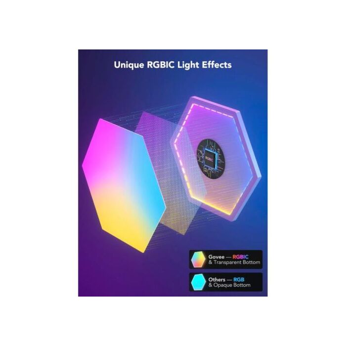 Die Panels verfügen über eine RGB-Farbänderung und bieten eine Vielzahl von Lichteffekten, die über die Govee Home App gesteuert werden können. Jedes Panel kann sowohl statisches Licht als auch dynamische Effekte erzeugen, sodass Sie die perfekte Stimmung für jeden Anlass schaffen können. Das moderne, hexagonale Design sorgt nicht nur für stilvolle Akzente, sondern ist auch äußerst funktional.