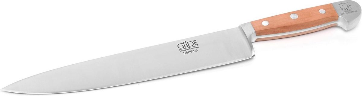 Das Design des Güde Alpha Kochmessers ist funktional und zeitlos. Die scharfe Klinge ermöglicht präzise Schnitte, während der ergonomische Griff aus Birnenholz eine angenehme Handhabung gewährleistet. Dieses Kochmesser ist nicht nur ein Werkzeug, sondern ein echtes Küchenaccessoire, das in keiner Küche fehlen sollte.