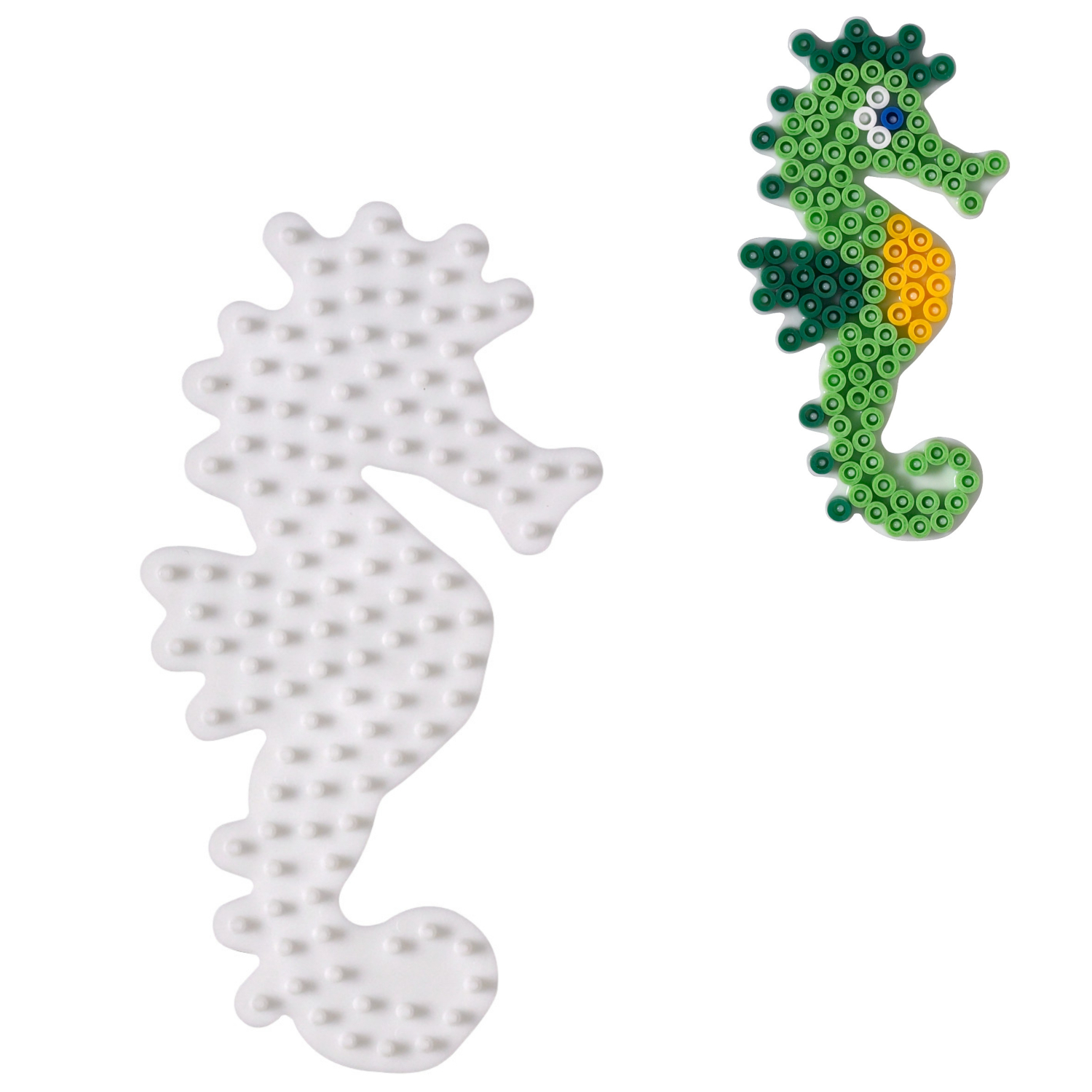 Die Hama Bodenplatte bietet eine geniale Grundlage zum Gestalten von einzigartigen Motiven. Das Seepferdchen-Design verleiht der Platte eine maritime Note und inspiriert kleine und große Bastelfans gleichermaßen. Durch die spezielle Form und die zahlreichen Steckplätze sind der Kreativität keine Grenzen gesetzt.
