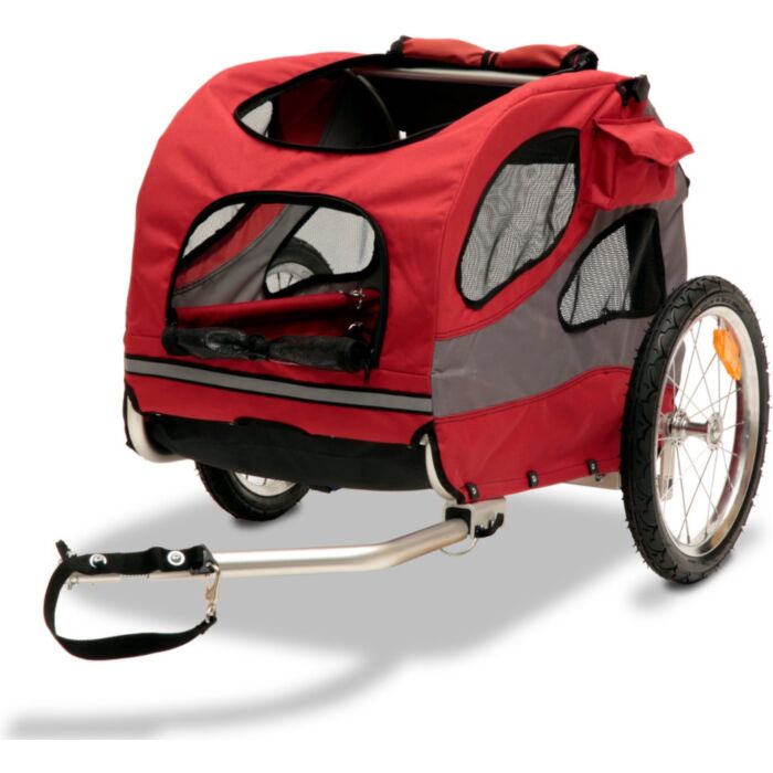 Die Fietskar misst 84 cm in der Länge, 56 cm in der Breite und 66 cm in der Höhe, was ausreichend Platz für Ihren Hund bietet. Gefertigt aus robustem, leichtem Aluminium, ist die Karre sowohl stabil als auch einfach zu transportieren. Damit ist sie die perfekte Wahl für aktive Hundehalter.