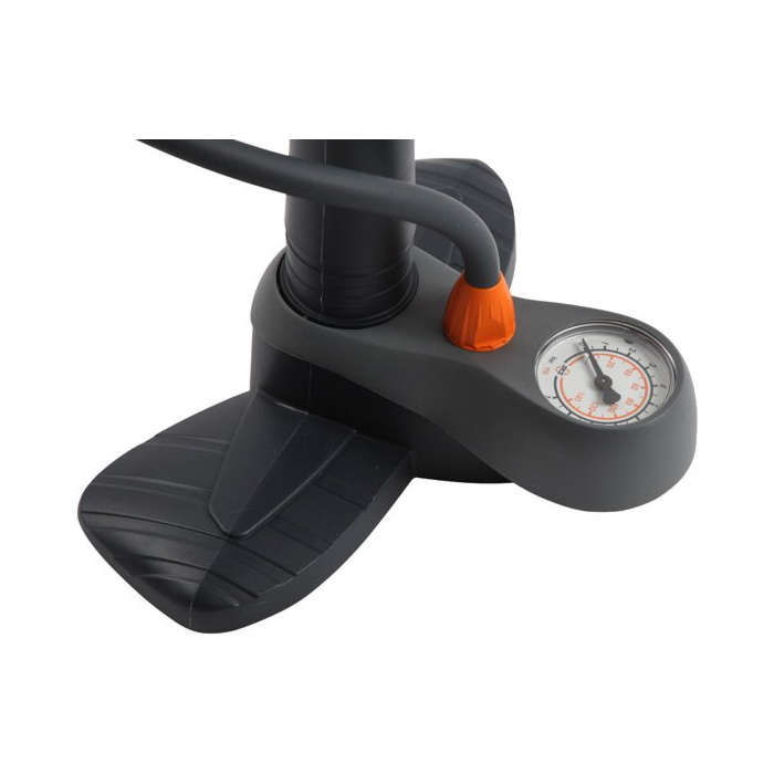 Das ergonomische Design des Handgriffs sorgt für einen komfortablen Griff während des Pumpens. Die integrierte Manometer zeigt den Druck in bar und PSI an, sodass Sie den Reifendruck genau überwachen können. Mit einer maximalen Druckkapazität von 8 bar / 15 PSI ist diese Pumpe leistungsstark genug für alle Arten von Fahrrädern.