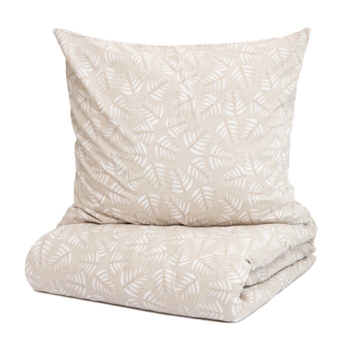 Omring jezelf elke nacht met de natuur met beddengoed CORALINE. Met een bladmotief op een beige achtergrond is deze charmante set de essentie van rust en elegantie, gemaakt voor diegenen die op zoek zijn naar een vleugje natuur in hun eigen huis. Het zachte kleurenpalet en het ontspannende patroon maken van elke slaapkamer een knus toevluchtsoord.