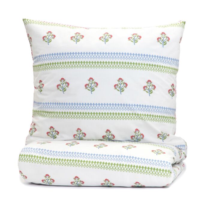 LIRELL beddengoed zal niet alleen je bed versieren, maar je ook in slaap laten vallen en wakker laten worden omgeven door levendige lentepatronen. Het bloemmotief, afgewisseld met subtiele strepen, brengt een gevoel van rust en huiselijke warmte in de ruimte. Het past perfect in elk interieur, van modern tot traditioneel.