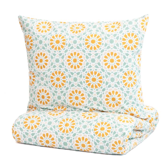 Voel hoe de zachte en lichte stof je huid omhult als je je bedekt met het HOMLA MASSEY beddengoed. Het frisse gele bloemenpatroon verlevendigt je slaapkamer en brengt je in een goed humeur, zodat je elke dag met een dosis positieve energie kunt beginnen. Met MASSEY beddengoed wordt elke avond een gelegenheid voor uitzonderlijke ontspanning op het hoogste niveau.
